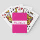 Solid Hot Pink White Stripes Modern Name Playing Cards