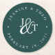 Solid Hunter Green Wedding Monogram Round Paper Coaster