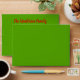A solid, bright, jolly green is featured on this colourful holiday envelope, with customisable back flap text and a solid holly red interior lining