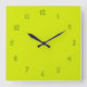 Solid Lime Green with Lime Numbers Square Wall Clock