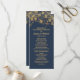 Elegant solid navy blue with glittering gold string lights and bokeh wedding program. Contact us for help with customisation or matching products.