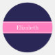 Solid Navy Blue Hot Pink #2 Ribbon Name Monogram Classic Round Sticker