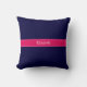 Solid Navy Blue, Raspberry Ribbon Name Monogram Cushion