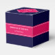 Solid Navy Blue, Raspberry Ribbon Name Monogram Favour Box