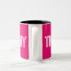 Solid Neon Hot Pink Custom Name Monogram Two-Tone Coffee Mug