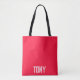 Solid Neon Red Colour Custom Name Monogram Tote Bag