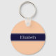 Solid Peach, Navy Blue Ribbon Name Monogram Key Ring