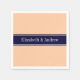 Solid Peach, Navy Blue Ribbon Name Monogram Napkin