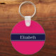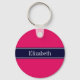 Solid Raspberry, Navy Blue Ribbon Name Monogram Key Ring