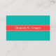 Solid Teal, Coral Red Ribbon Name Monogram Business Card