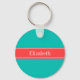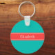 Solid Teal, Coral Red Ribbon Name Monogram Key Ring