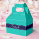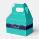 Solid Teal, Navy Blue Ribbon Name Monogram Favour Box
