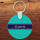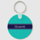 Solid Teal, Navy Blue Ribbon Name Monogram Key Ring
