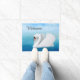 Original fine art design of a solitary mute swan by artist Carolyn McFann of TPC Studio printed on a customisable, fadeproof, mould and mildew resistant doormat for wild bird fans.