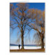 A solitary figure contemplates the frozen Cayuga Lake in Ithaca, N.Y. Golden willows stand out against a pure blue sky.