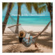 Escape to paradise with this serene portrait-format art print featuring a solo female traveller reclining in a hammock strung between swaying palm trees. She faces the turquoise ocean, book in hand and straw hat shading her face, as her toes gently sway over warm sand. The peaceful tropical setting and resort-style composition create a calming focal point for any living space, evoking the ultimate feeling of rest, renewal, and wanderlust.