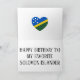 Beautiful design includes happy balloons and ticker tapes with the words "Happy Birthday", covered in the colours of the Solomon Islands flag. Design is finished with the heart in the Solomon Islands flag colours and the Birthday message. Elements are fully customisable using "Customise it!" feature. This colourful birthday card is the perfect present for your friend from Solomon Islands. © CountriesOfTheWorld