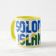 Solomon Islands National Flag Patriotic Coffee Mug with the delightful inscription "Solomon Islands" which is infused with the pattern and the colours from the national flag. Design is finished with the two double thin lines in complementing colours on the top and on the bottom of the cup. Colours inside the cup and on the cup handle are balanced with the rest of the cup colours. Line colours can be changed to any colour of your liking by pressing "Edit Design" button. Here is the fantastic companion for the daily cup of coffee. Charming design, lovely colours and the unique look makes it perfect gift for any occasion. © 2024 CountriesOfTheWorld