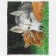 Somali cat and Siberian Husky huggle together, they love one another, a close friendship. A cute animal photo taken by Katho Menden. This large soft comfortable fleece blanket is a gift idea for cat and dog lovers.