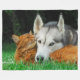 Somali cat and Siberian Husky cute friends huddle Fleece Blanket