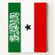 This design features the flag of Somaliland (officially the Republic of Somaliland), which is a self-declared state, internationally considered to be part of Somalia. The government of the de facto state of Somaliland regards itself as the successor state to the former British Somaliland protectorate, which, in the form of the briefly independant State of Somaliland, united as scheduled on 1 July 1960 with the Trust Territory of Somaliland (the former Italian Somaliland) to form the Somali Republic. Somaliland lies in northwestern Somalia, on the southern coast of the Gulf of Aden. It is bordered by the remainder of Somalia (per international recognition) to the east, Djibouti to the northwest, and Ethiopia to the south and west. The capital and the largest city of Somaliland is Hargeisa.