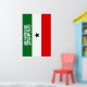 This design features the flag of Somaliland (officially the Republic of Somaliland), which is a self-declared state, internationally considered to be part of Somalia. The government of the de facto state of Somaliland regards itself as the successor state to the former British Somaliland protectorate, which, in the form of the briefly independant State of Somaliland, united as scheduled on 1 July 1960 with the Trust Territory of Somaliland (the former Italian Somaliland) to form the Somali Republic. Somaliland lies in northwestern Somalia, on the southern coast of the Gulf of Aden. It is bordered by the remainder of Somalia (per international recognition) to the east, Djibouti to the northwest, and Ethiopia to the south and west. The capital and the largest city of Somaliland is Hargeisa.