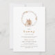 Celebrate the mum-to-be with this whimsical Easter baby shower invitation featuring a watercolor illustration of a cute little bunny with a watercolor wildflower wreath with tiny wildflowers.