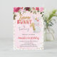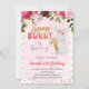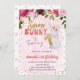 Pink 1st Birthday Invitation for Girls with Bunny & Flowers