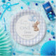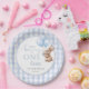 These charming 1st birthday party paper plates feature a cute bunny rabbit holding balloons and a blue gingham background. Designed by Thisisnotme©