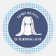 Some Bunny is One blue Gingham Birthday Classic Round Sticker