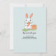 Celebrate your little bunny’s first milestone with this adorably sweet birthday invitation! Set against a soft pastel blue background, this design features a cute bunny sitting on a grass patch with a basket of carrots, bringing warmth and charm to your celebration. The text "Some Bunny is Turning One" is beautifully styled in a mix of script and bold fonts, while the back continues the theme with "Hop on to the Fun" and room for extra details. Easily customise all text to make it perfect for your little one’s big day!