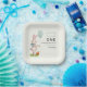 Hop into the sweetest celebration with this "Some Bunny is Turning One" birthday paper plate! Featuring an adorable bunny holding a blue balloon next to a basket of fresh carrots on a grassy patch, this charming design is perfect for your little one’s first birthday. The soft off-white background and elegant mix of script and serif fonts add a timeless touch. The back continues the whimsical theme with the same bunny illustration and the heartfelt message "I hope to see you"—plus space for additional details. Easily customisable for your special day!