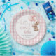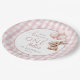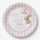 These charming 1st birthday party paper plates feature a cute bunny rabbit holding balloons and a pink gingham background. Designed by Thisisnotme©