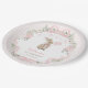 Designed with a soft, vintage watercolor style, this adorable paper plate features a whimsical watercolor bunny holding a pink balloon, delicate daisies and greenery accents, and elegant blush pink bows wrapped in flowing ribbon. The gentle pastel palette and whimsical layout offer a perfect touch of coquette girly elegance for your celebration.
