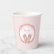 Some Bunny is turning one Birthday girl's party paper cups. Lovely typography in pastel pink. Adorable watercolor bunny ears with pink wildflowers on a pastel pink background. Easy personalise your special Birthday girl's name.