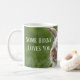 This cute bunny mug features the customisable message, "Some Bunny Loves You" with a photo of an adorable French Lop Rabbit. Photography created by award-winning photographer Maria Jeffs.