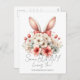 This customisable postcard not only captures the essence of the season but allows you to infuse it with your own heartfelt wishes. Adorned with enchanting floral patterns and the whimsy of bunny rabbit ears, this postcard is a visual symphony of joy, renewal, and the magic that Easter brings. What makes it truly special is the ability to add your family name, turning it into a unique and memorable keepsake.