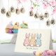 An adorable Easter card featuring the back of three pastel bunnies and their cute cotton tails. The front featured text reads: "Some bunny loves you". The inside featured text reads: "That some bunny is me. Happy Easter". Click "Personalise this Template" to easily change or remove any of the featured text. This card is perfect for a partner, spouse, child, parent, or grandparent.