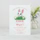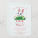Celebrate your little one’s first birthday with this adorably sweet bunny invitation! Featuring a cute bunny sitting on a grass patch surrounded by daisy flowers, this soft pastel blue design is perfect for a springtime celebration. The playful text "Some Bunny is Turning" leads to a bold "ONE" in a modern sans-serif font, making it a stylish yet charming choice. The back continues the fun with cute bunny paw prints and the phrase "A Hopping Good Time", plus space for extra details. Easily customise all text to match your special day!
