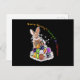 Some-bunny's excited for Easter! Curious, cute and funny Easter Bunny or Easter Rabbit peeking behind a pile of painted decorated or ornate Easter Eggs for Easter Egg Hunt with pun phrase