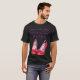 I give wanted to give this a 4 instead of a 5 because these Basic DARK T0shirts run unexpectedly SLIM or Narrow. Which is great if you do not have a potbelly, but I have a paunch. It isn't the shirt's fault that I've got a beer belly. The design and shirt itself is a quality cotton shirt. The color is more of a deep purple, but still a very pretty color. The Basic DARK T-shirts run a bit SLIMMER than the Basic Ts. The neck is a fraction narrower (or seems to be narrower) also. I'm a paunchy middle-aged woman and my neck is 12 inches (31cm) thick and the neckline fell about the same as in the photo of the man, and I had the desire to tug it a bit. So if you're a thick necked man or like loose shirts, be aware these are slimmer shirts. Once I get rid of my lockdown paunch it'll look great. The shirt washed well in cold water with no apparent bleeding. We don't have a dryer, so it hung dry. Did not shrink. Love the colors and the design. The design looks smaller on my shirt than it does on the model on-line. But still, it looks good on the shirt. The printing looks as it does on the model, just the size seems fractionally smaller. Washed garment in cold water, hung dry and design appeared unaffected.