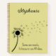 This sweet notebook features a dainty dandelion with it's little petals blowing in the wind. Below it says "Some see weeds. I choose to see wishes."  It's set against a pale yellow background and you personalise it at the top with your name in a pretty script. There are several different papers to choose from, including wide ruled, graph paper, recipe paper, drawing paper and more.