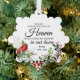 A true keepsake of someone who you miss terribly. Cardinal with holiday greenery, script and class typography paper ornament.