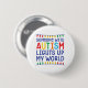 "Someone with autism lights up my world" button for Autism Awareness. A great way to show your support by wearing this button for Walks, Runs, Marathons, Fundraisers, Charity Events to your School, Office etc. Perfect to wear during Autism Awareness Month in April. Featuring cute and colorful typography in blue, red, green, orange and yellow with colorful light strings, this button with a positive message is a great way for bringing awareness to this important issue. ©TeacherTribeMerch