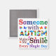 Inspirational Autism quote of “Someone With AUTISM Makes Me SMILE Every Single Day” with colorful Autism puzzles, beautiful flowers, and butterflies to support autistic children and their families.