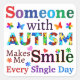 Inspirational Autism quote of “Someone With AUTISM Makes Me SMILE Every Single Day” with colourful Autism puzzles, beautiful flowers, and butterflies to support autistic children and their families.