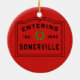 Christmas holidays in New England would not be complete without a festive Entering Somerville ornament. Great gift idea for someone living in the city of Somerville MA, or a Somerville neighborhood like Davis Square, Spring Hill, East Somerville North, Ball Square / Powder House Square, Prospect Hill, Davis Square South, Winter Hill Northeast, or City Center. Give one to your parents, grandparents, newlyweds, welcome to the neighborhood, housewarming you name it!