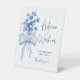 Something Blue Advice & Wishes Pedestal Sign | Elegant Dusty Blue Floral & Ribbon Bow Bridal Shower Décor