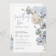 Invite guests to your bridal shower with this gorgeous Something Blue floral bridal shower invitation that hosts a variety of blue flowers.