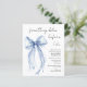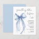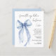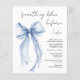 Elegant budget bridal shower invitation featuring a delicate watercolor of a blue coquette bow and "something blue before I do" in a chic script. This budget semi-gloss paper is similar in weight to photo paper. A thicker 5x7 traditional card stock version is also available (message us for the link).